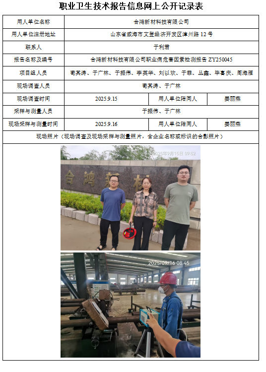 上一页:腾森橡胶轮胎(威海)有限公司职业病危害因素检测报告信息网上公开